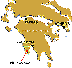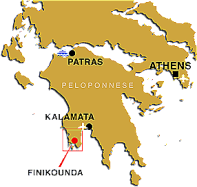 Finikounda (sometimes spelled Foinikounta, which is its Greek spelling) is a seaside village in the municipal unit of Pylos-Nestor, Messinia, on the southwestern tip of the Peloponnese peninsula, 37 km down from the airport city of Kalamata, world-famous for its delicious dark olives.